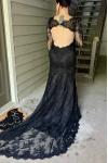 Dress is absolutely gorgeous, the open back and sleeves were exactly what I had hoped for. The train is not too long so walking is really easy. It’s a perfectly length when heels are added too. Only downside to the dress was my hips are too tight in the dress where I can’t sit or bend. I recommend getting a larger size.