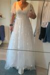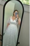 レビュー: ウェディングドレス VネックラインAライン ウェディングドレス半袖背中の開いたブライダルドレス ホワイトレース