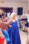 レビュー: イブニングドレス Vネック ボールガウンライン ロイヤルブルー パーティードレス サテン ファスナー トレーン付き 七分袖 30cm フォーマルドレス 演奏会ドレス 結婚式 二次会ドレス 発表会 レース ウェディング
