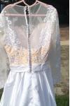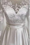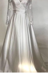 レビュー: プリンセスライン ウェディングドレス ラウンドネック ブライダルドレス アイボリー 結婚式 二次会 披露宴 花嫁ドレス サテン 長袖 挙式 コートトレーン くるみボタン ウェディング ナチュラルウェストライン ウェディングドレス