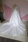 Je porte habituellement du 34 mais elle est un peu grande, je vous conseille une taille en dessous. Je mesure 148cm pour 51 kilos donc elel trane beaucoup au sol je vais la faire retoucher. Mais elle correspond totale au photo trs jolie. J’ai prise la couleur blanche mais prenez la couleur ivoir pour que la partie haute de la robe se fond avec votre teint