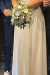 It fits so well, especially under the arms... no bra peeking out! I love the weight of it. Light that it hangs beautifully and when I pick it up, it is a great wedding jumpsuit! The service responded quickly pre-order answering all my questions.