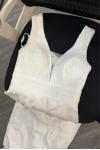 レビュー: ホワイトのシンプルなウェディングジャンプスーツ ストレッチクレープ Vネック ノースリーブ Aライン ブライダルジャンプスーツ 無料カスタマイズ