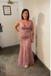 También puedo decir que hay un poco de elasticidad si ganara algo de peso antes del evento o si comiera mucha comida en el evento y no sintiera que me estaba quitando el vestido. Es hermoso, liviano y no pica como muchos otros vestidos de lentejuelas. Tiene un deslizamiento agradable y cómodo.