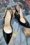 レビュー: ブラックハイヒール、ポインテッドトゥ、ラインストーン、スリングバック、パーティーパンプス