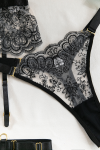 レビュー: ブラックセクシーランジェリー ブラパンツセット 刺繍レースTバックGストリングセット