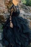 レビュー: ブラック ロイヤル ウェディングドレス プリンセスシルエット ロングスリーブ カットアウト チュール トレーン付き ブライダルドレス