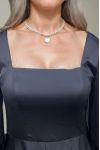 I love this dress, it's simple and elegant. It matches my necklace perfectly.