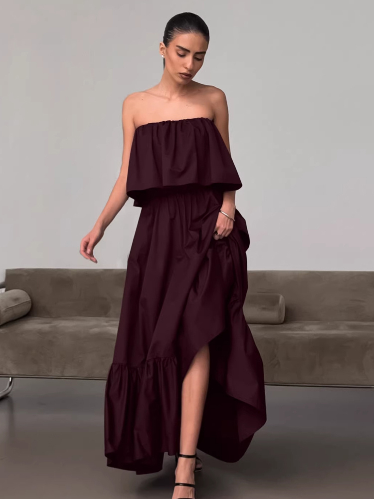 100%コットン ストラップレス レディース マキシドレス アースカラー - セクシーなチューブトップ ラッフル サンドレス - ボヘミアン ビーチ バケーション ロングドレス 2026