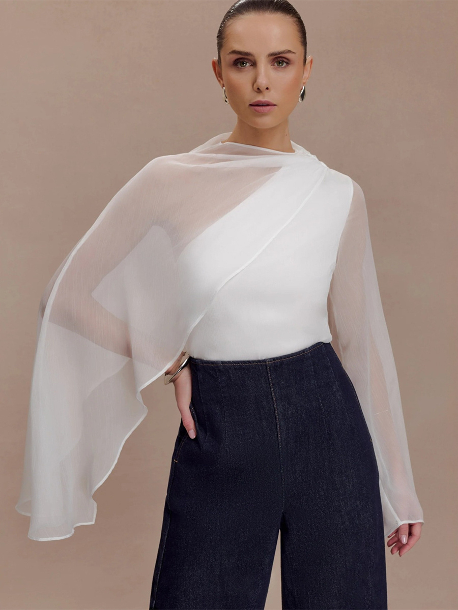 アシンメトリーシフォンケープスリーブブラウス(レディース)2026
