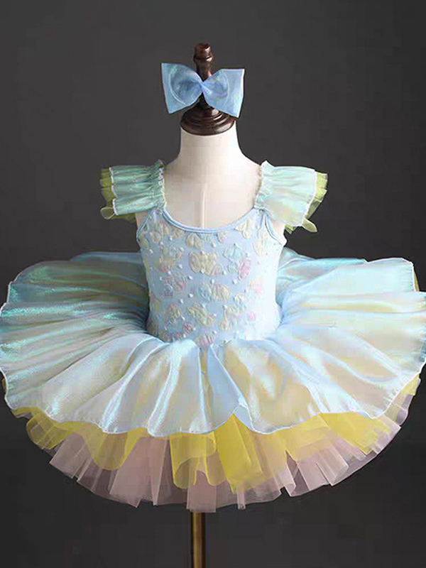 バレエチュチュドレス 多層パフィーガールズ ライトスカイブルー バレリーナチュニック ダンスウェア