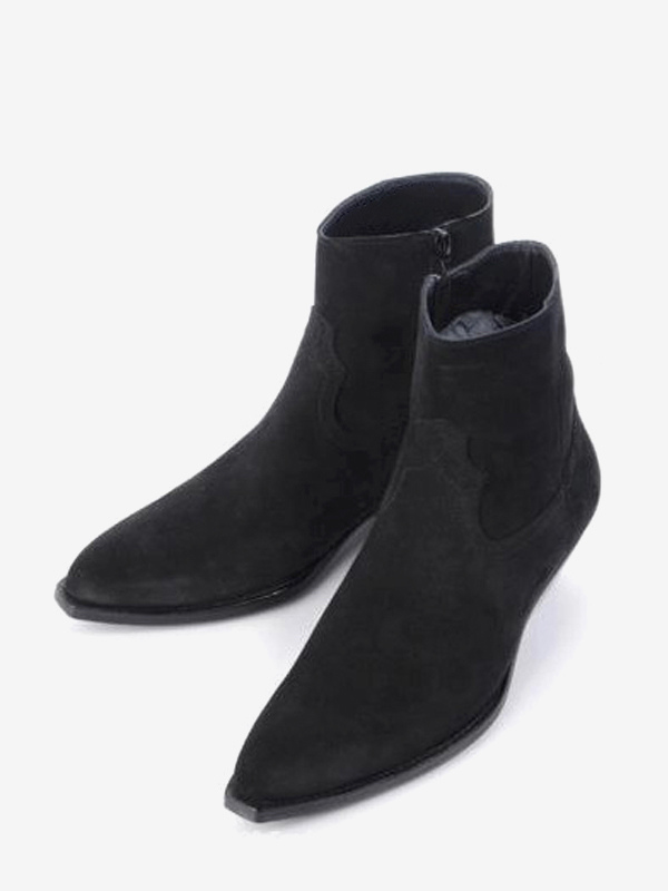 メンズ ブラック アンクルブーツ ポインテッドトゥ チャンキーヒール ブーティ