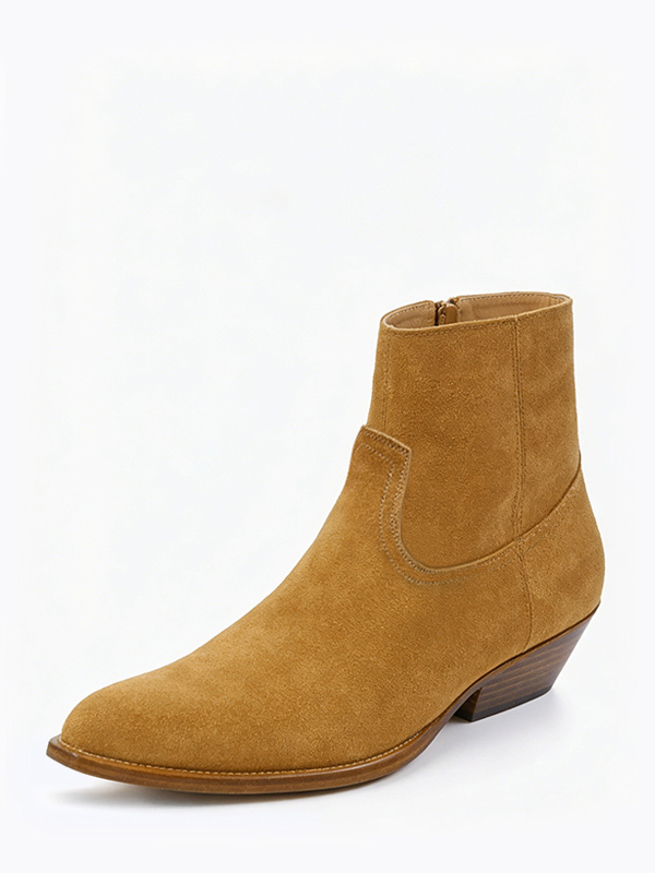 メンズ ブラック アンクルブーツ ポインテッドトゥ チャンキーヒール ブーティ