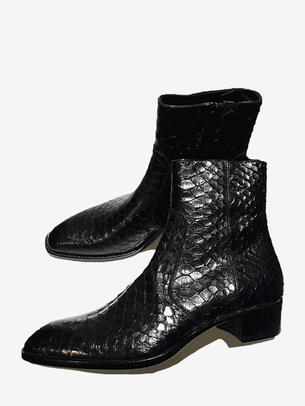 ブラックの本革製ブーティ、ラウンドトゥ、レースアップアンクルブーツ