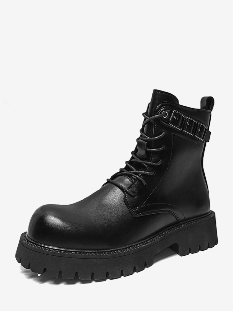 ブラックマーティンブーツ メンズ ラウンドトゥ レースアップ アンクルブーツ