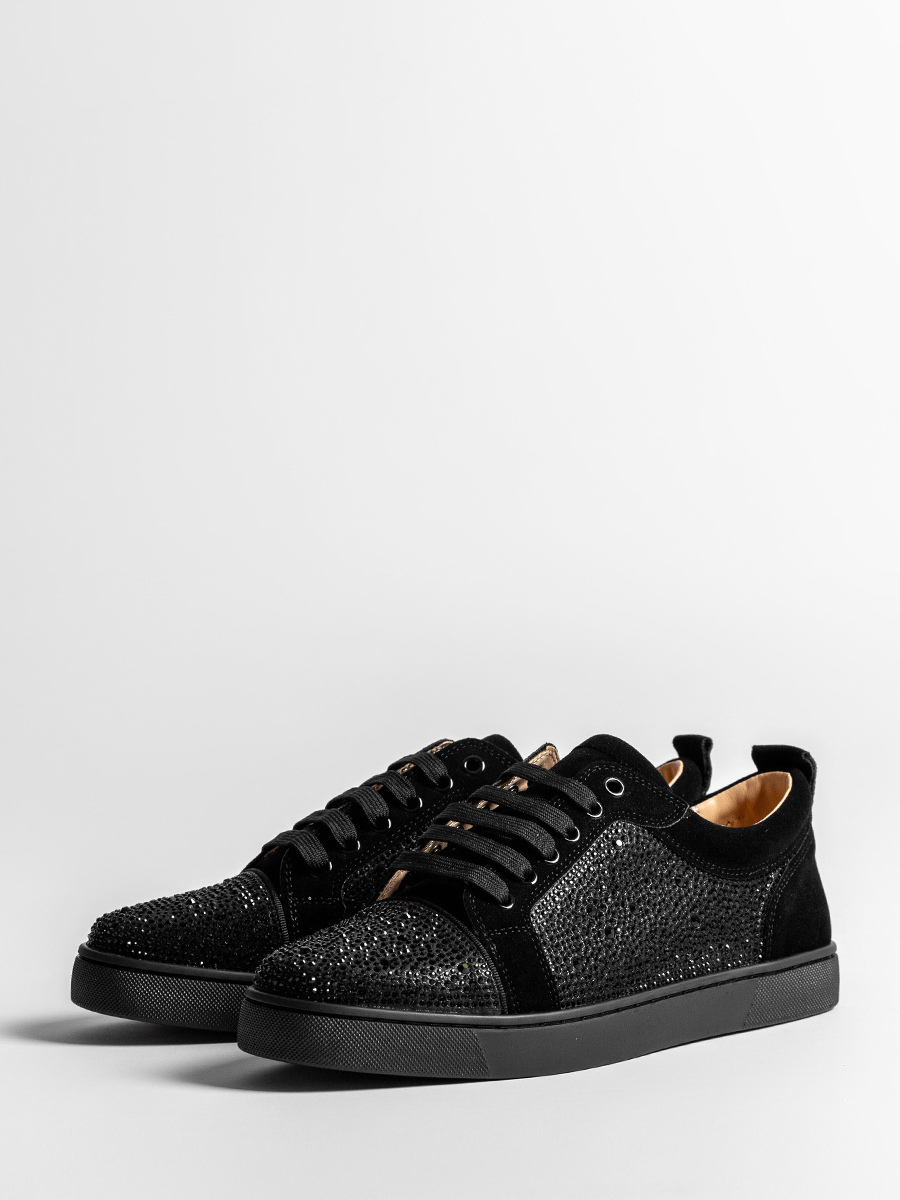 ブラック スケートスニーカー スエード ラウンドトゥ パッチワーク レースアップ カジュアルシューズ