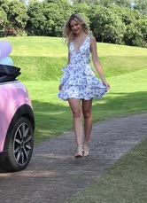 ブルーフローラルミニドレス VネックティアードAラインバースデーパーティードレスレディース2025