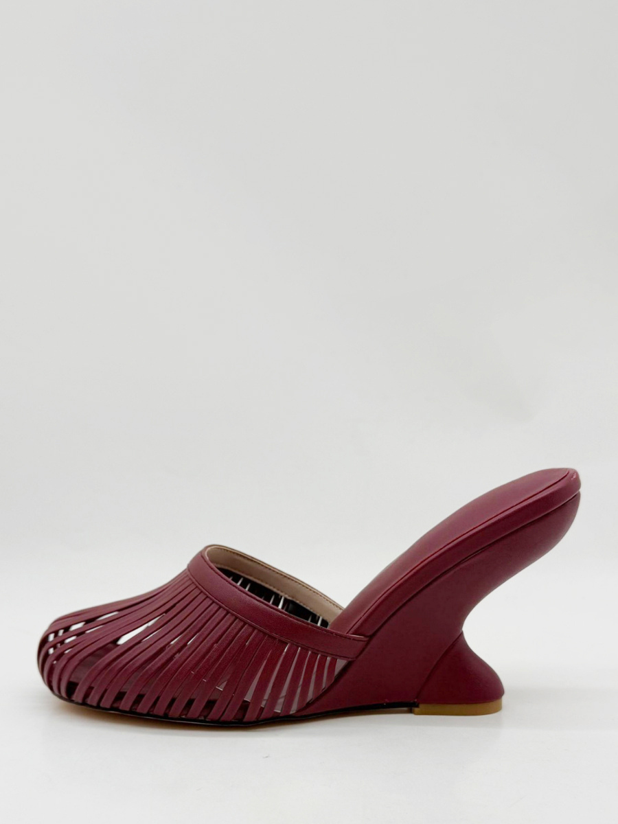 バーガンディ ウェッジサンダル ラウンドトゥ カットアウト バックレス サンダルシューズ