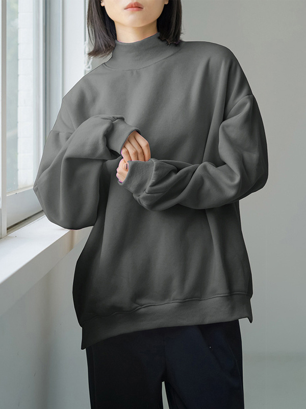 カジュアルハイカラーブラック長袖トップススウェットシャツ/パーカートップスレディースファッション
