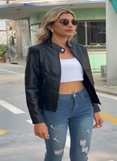 クラシックなジップアップフェイクレザーモトジャケット(スタンドカラー)レディース 2025