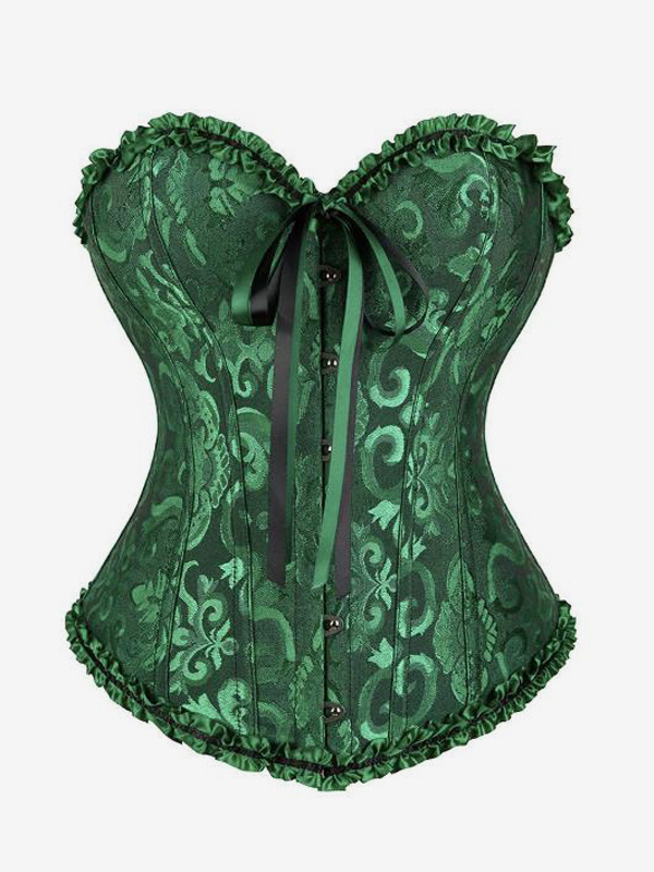 コルセット ランジェリー シェイプウェア ゴールド 花柄プリント ノースリーブ 前ボタン レースアップ