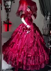 ゴシックウェディングロリータドレス フリルリボン 赤白ガウン