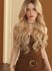 グラデーションロングカーリーウィッグミドルパートビッグウェーブ耐熱ファイバーデイリーウィッグ女性用2025
