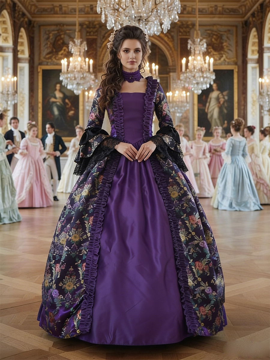 グレープ レトロ コスチューム レースアップ サテン生地 タトゥープリント チョーカー 女の子用 ゴシック マリー アントワネット コスチューム セット 仮面舞踏会 ドレス