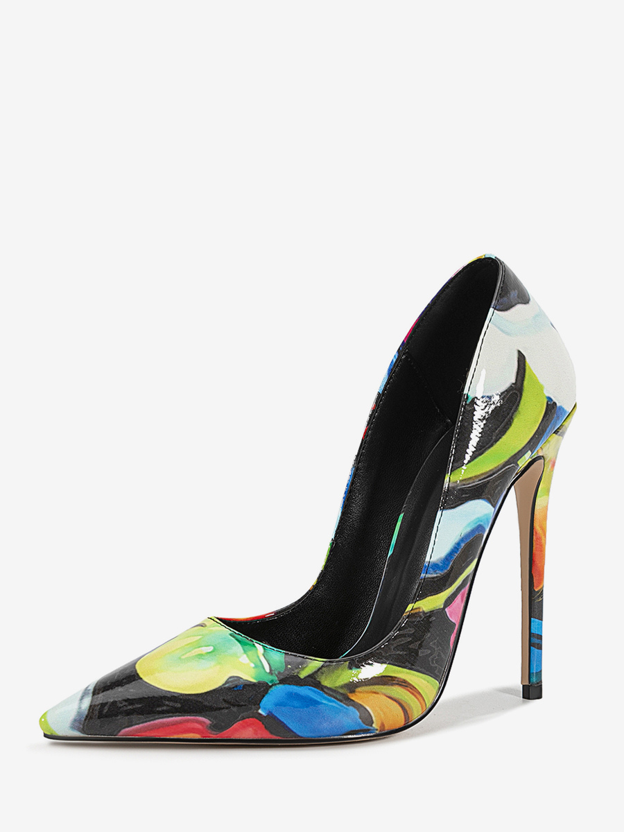 ハイヒールパンプス レディース ポインテッドトゥ 柄入り スリッポン ドレスシューズ