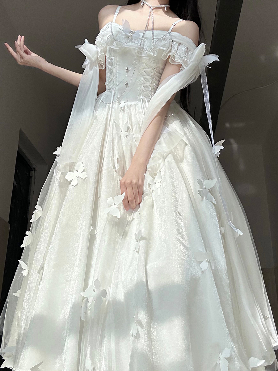 姫ウェディング スイートロリータ ノースリーブ パール ホワイト ロリータ ドレス デイリーカジュアルドレス