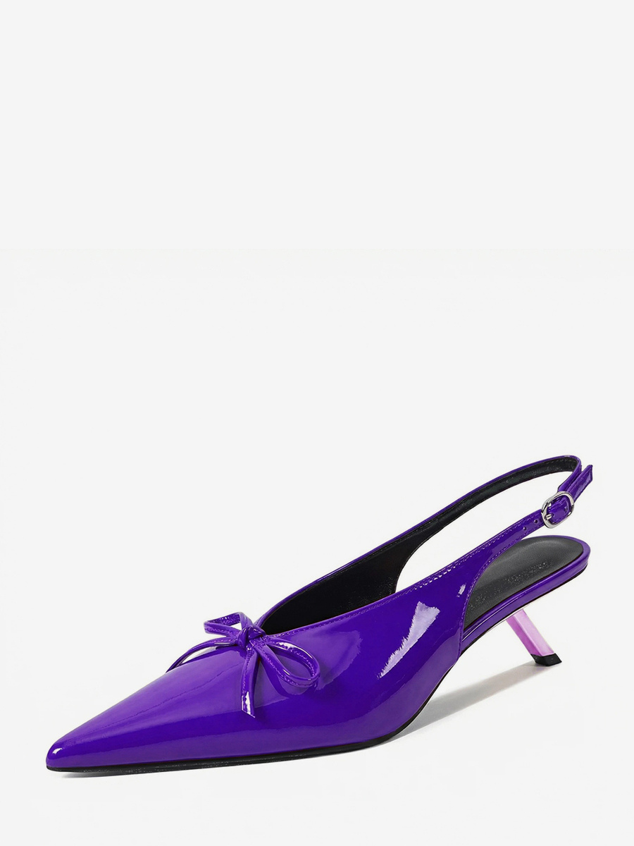 キトゥンヒールパンプス ポインテッドトゥ リボン スリッポン プロムシューズ