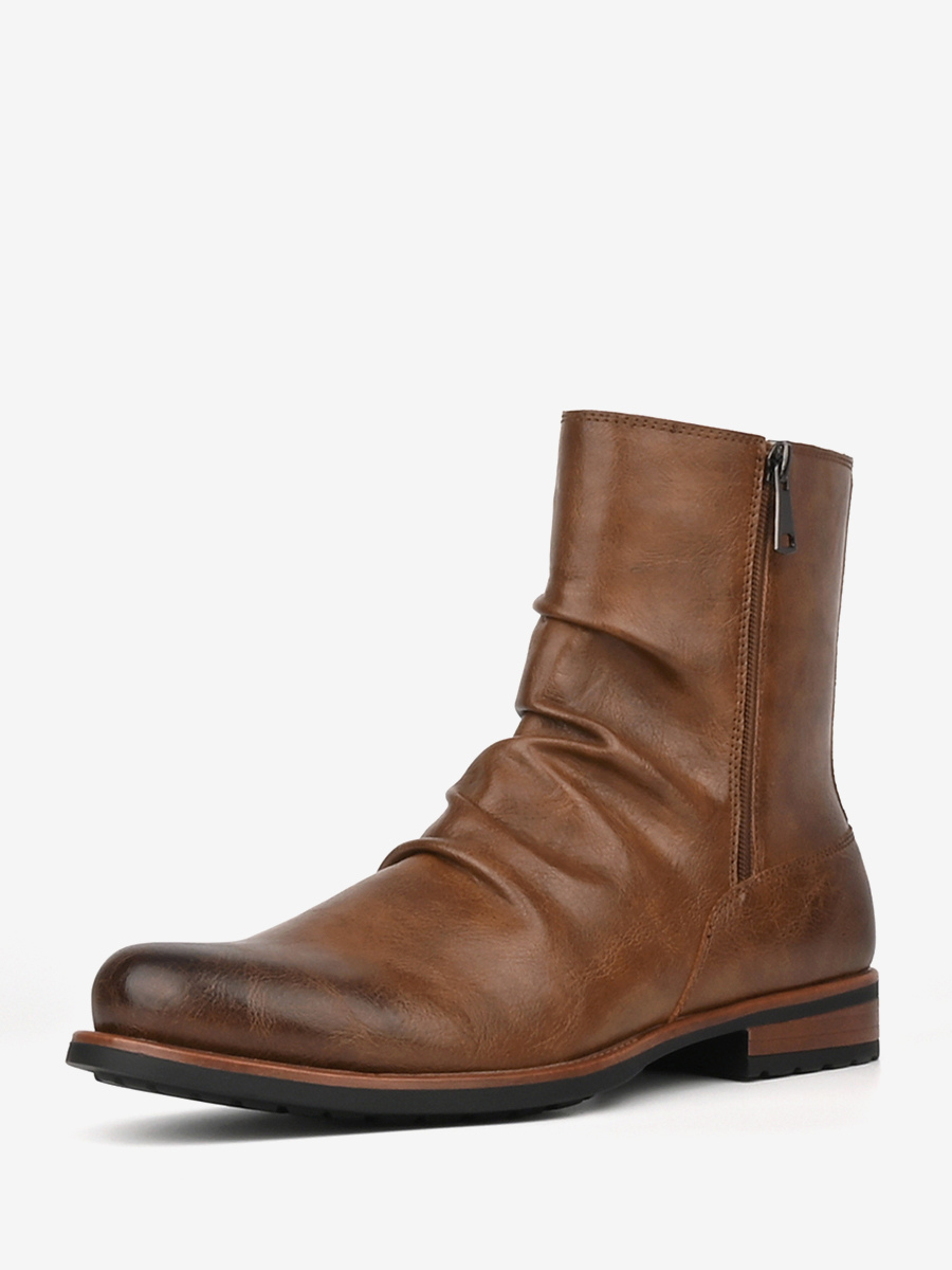 メンズ アンクルブーツ ラウンドトゥ ルーシュ ジップアップ ブーティ