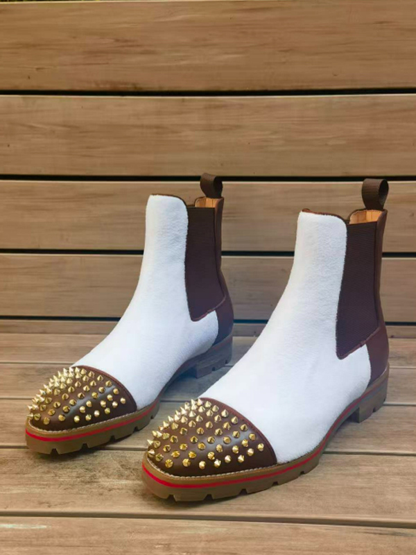 メンズ アンクルブーツ ラウンドトゥ スタッズ フラット チェルシーブーツ