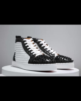 メンズ ブラック&ホワイト ハイトップ スニーカー スパイク付き