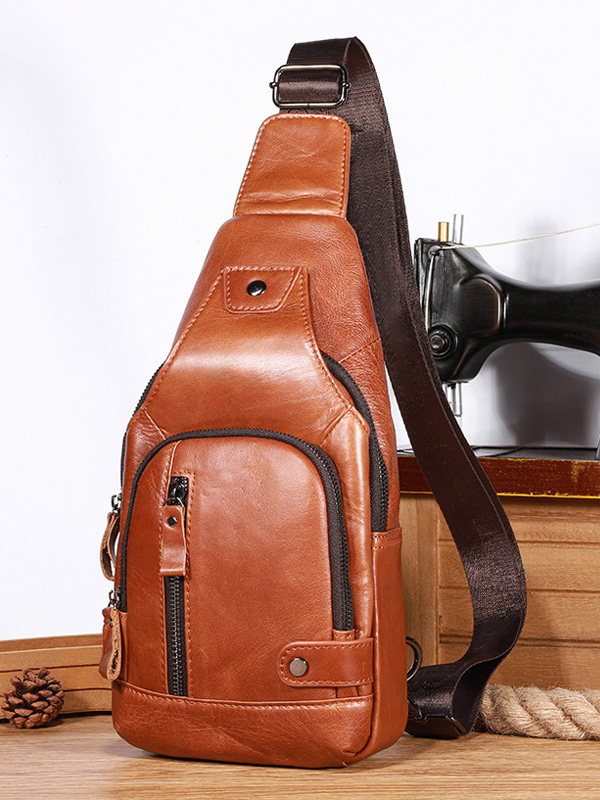 メンズ ダークブラウン ジッパー クロスボディバッグ