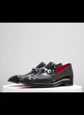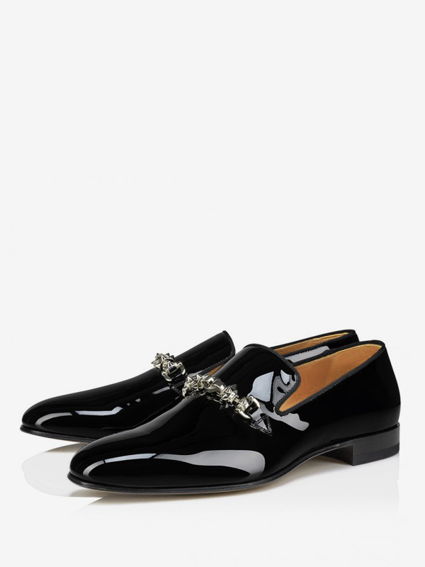 メンズローファー パテントレザー シルバーチェーン スリッポン プロム ウェディングシューズ