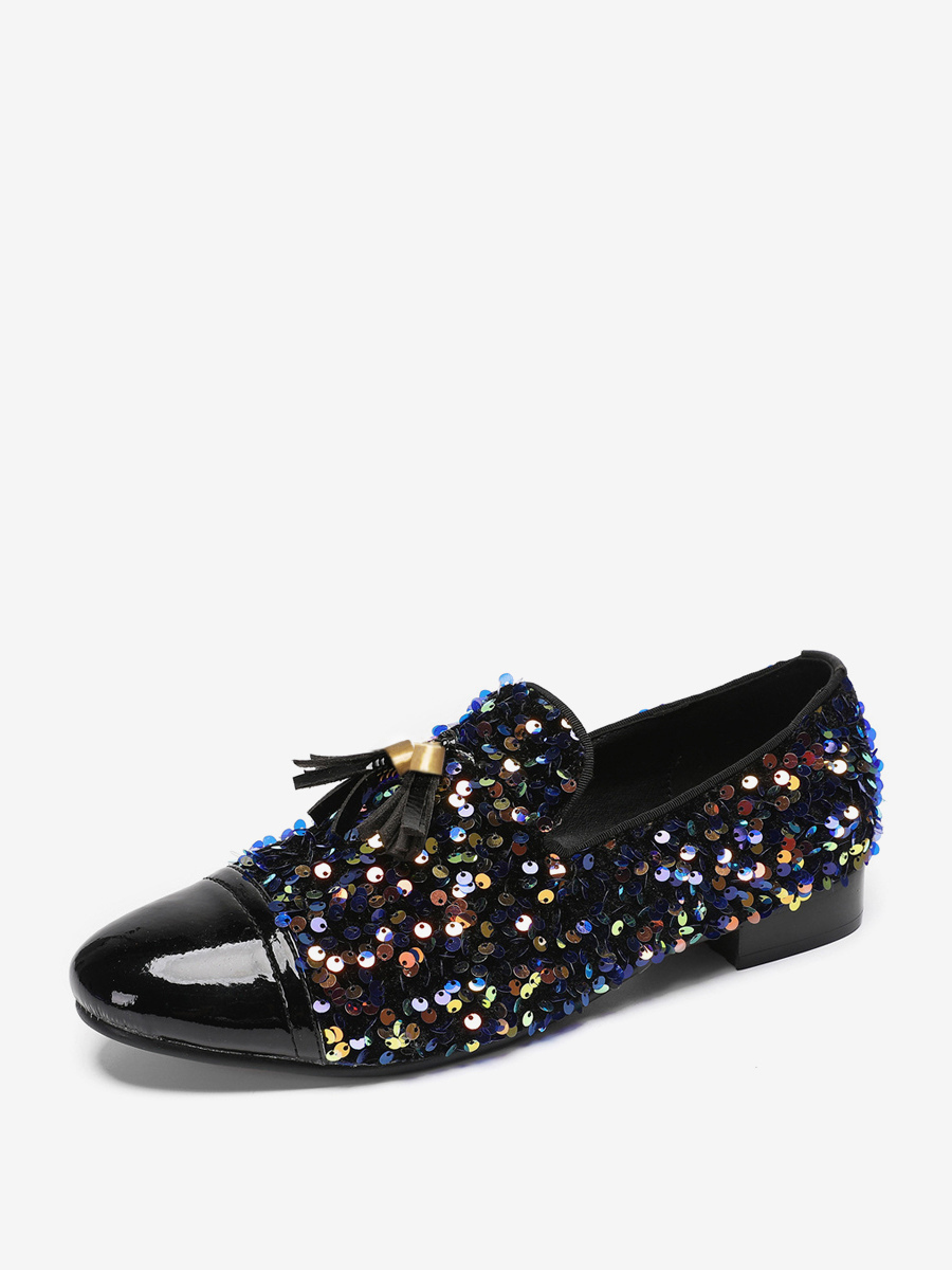 メンズ リベット ローファー レザー スパンコール シューズ スリッポン グリッター プロム ウェディングシューズ