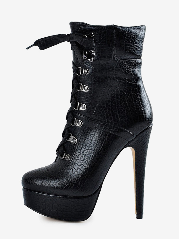 メンズセクシーブーツ ブラック プラットフォーム ストーン柄 レースアップ ハイヒール アンクルブーツ
