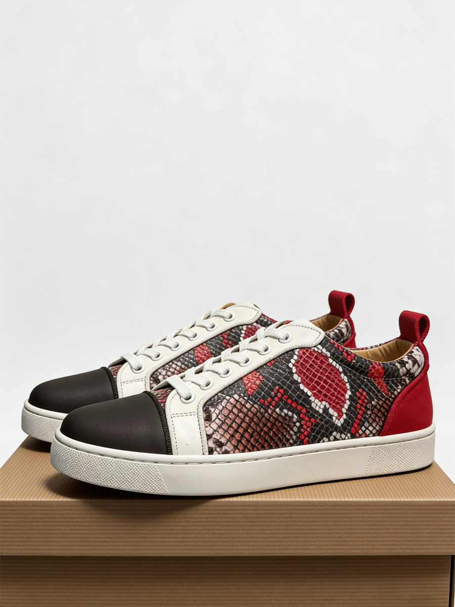 メンズ スケートスニーカー ラウンドトゥ レースアップ スネーク柄 カジュアルシューズ