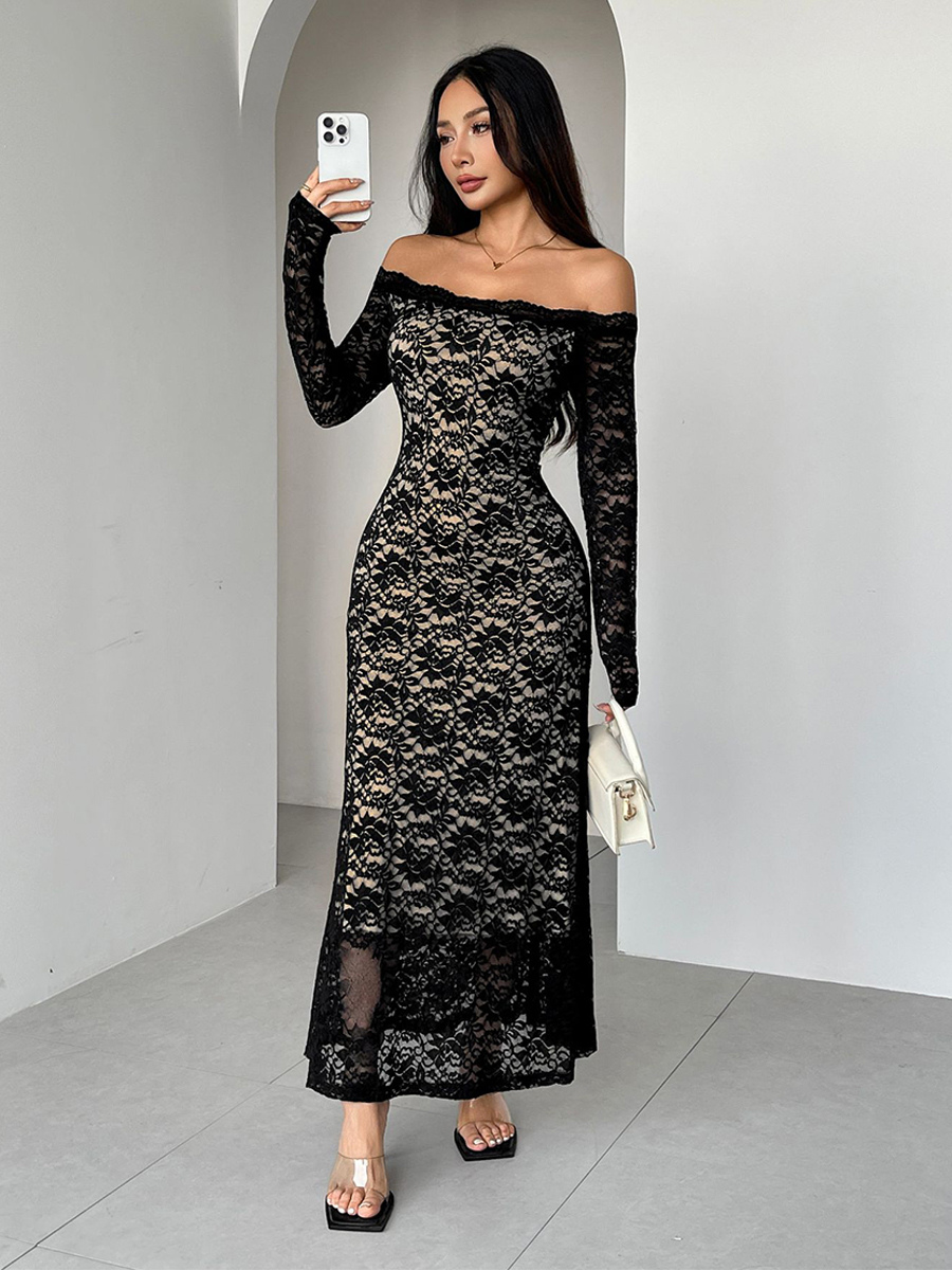 オフショルダー レース 長袖 ボディコン マキシドレス レディース 2026
