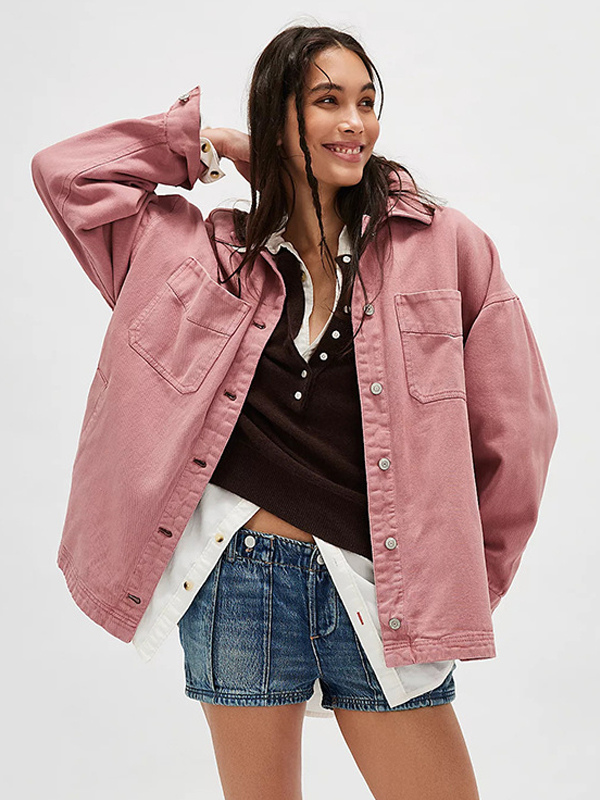レディース用オーバーサイズデニムジャケット - ミディアムウォッシュ ボーイフレンドフィット サイドスリット トラッカーコート - 2026年春のデイリーストリートウェア