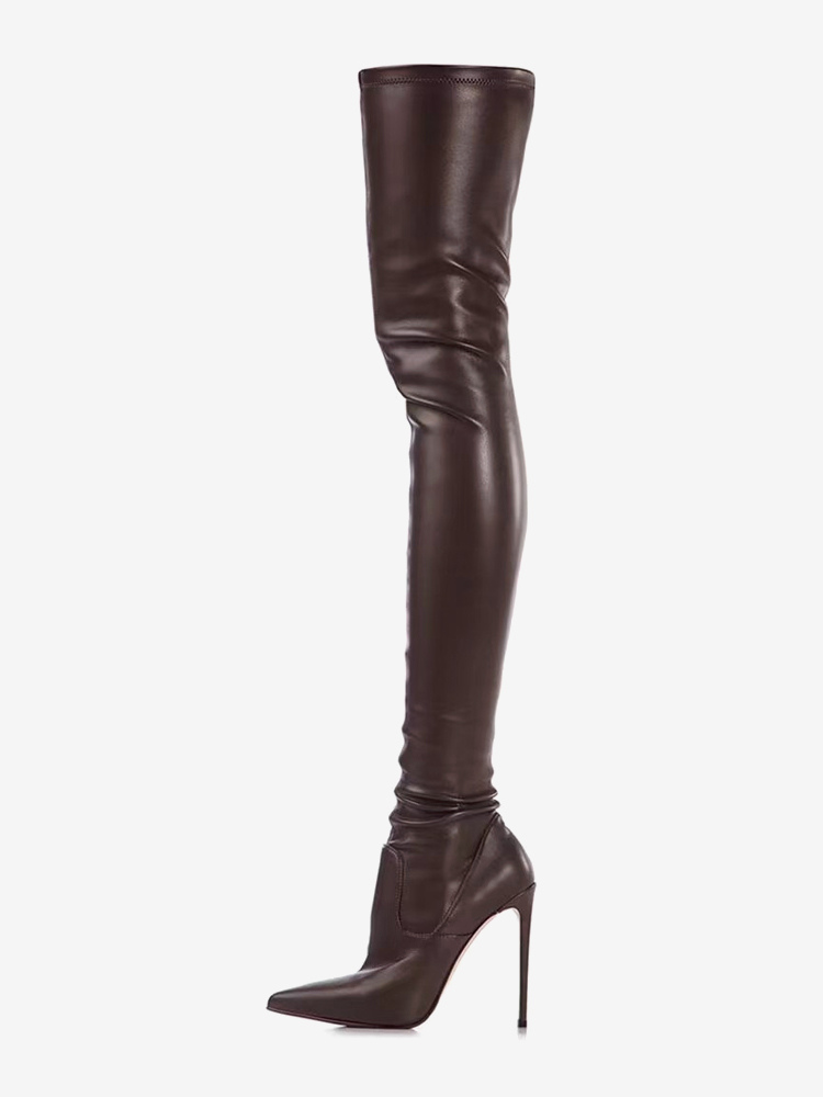 女性用サイハイブーツ、つま先が尖ったハイヒール、セクシーなオーバーニーブーツ