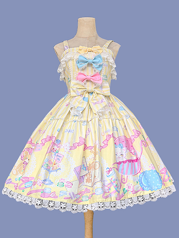 スイートロリータドレス ノースリーブ リボン ジャンパー スイート おとぎ話風 イエロードレス