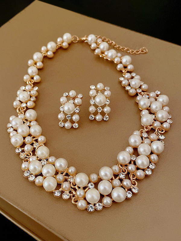 ヴィンテージドレスにぴったりのパールとラインストーンのヴィンテージジュエリーネックレスとイヤリングセット