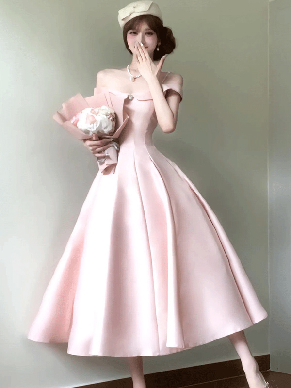 ピンクの妖精ロリータドレス オフショルダー ストラップレス ロリータドレス