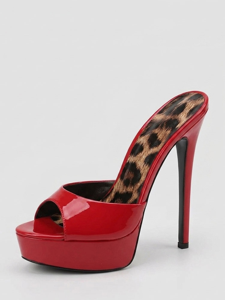 赤いセクシーなサンダル スリッパ プラットフォーム オープントゥ ハイヒール スライド