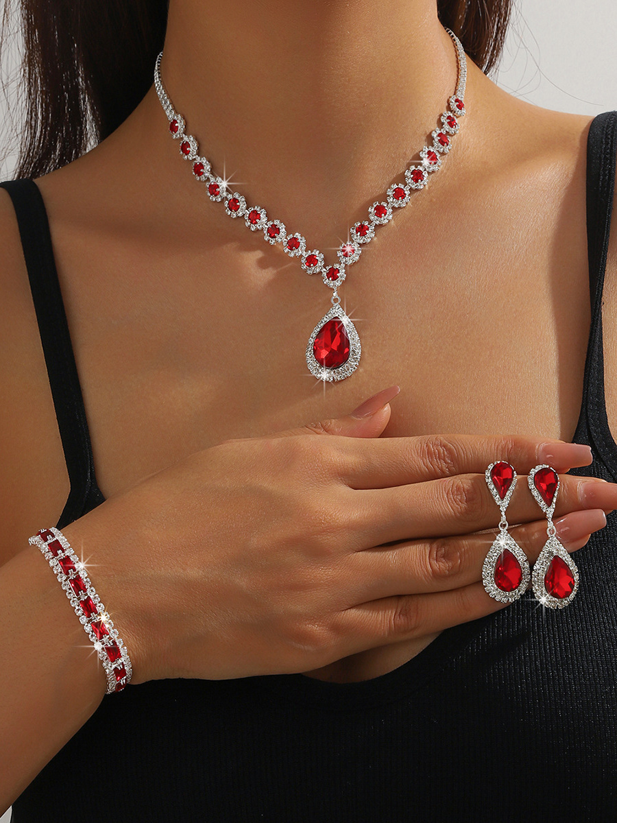レッドヴィンテージビクトリアンジュエリーセットネックレスイヤリングアームウェアレトロラインストーンセット