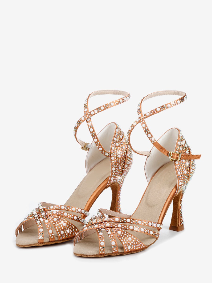 サテン社交ダンスシューズ ラインストーン ストラップ ラテンダンスシューズ