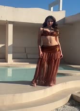 2025年夏向けの光沢のあるビキニとマキシスカートの3ピース水着セット