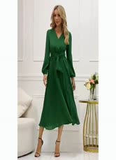 スケータードレス ポリエステル Vネック グリーン セクシー 長袖 フィット&フレアドレス